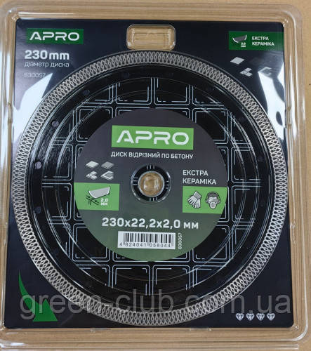 Диск відрізний для бетону Кераміка Екстра 230х2.0х22.22 мм 22-24% APRO 830057